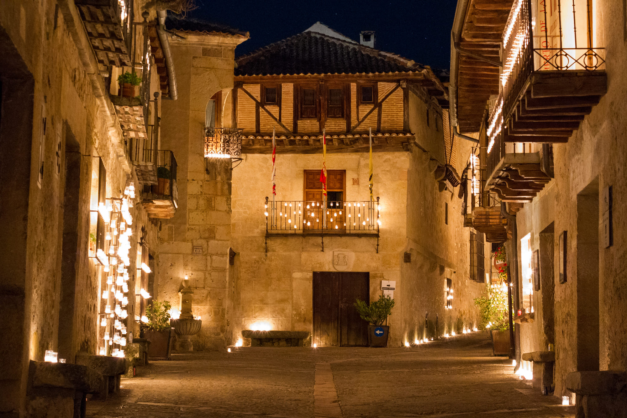 Dos noches al año Pedraza recupera la magia de la luz ancestral sustituyendo la luz artificial por millares de velas repartidas por todas las calles, balcones, plazas, patios y callejones.
